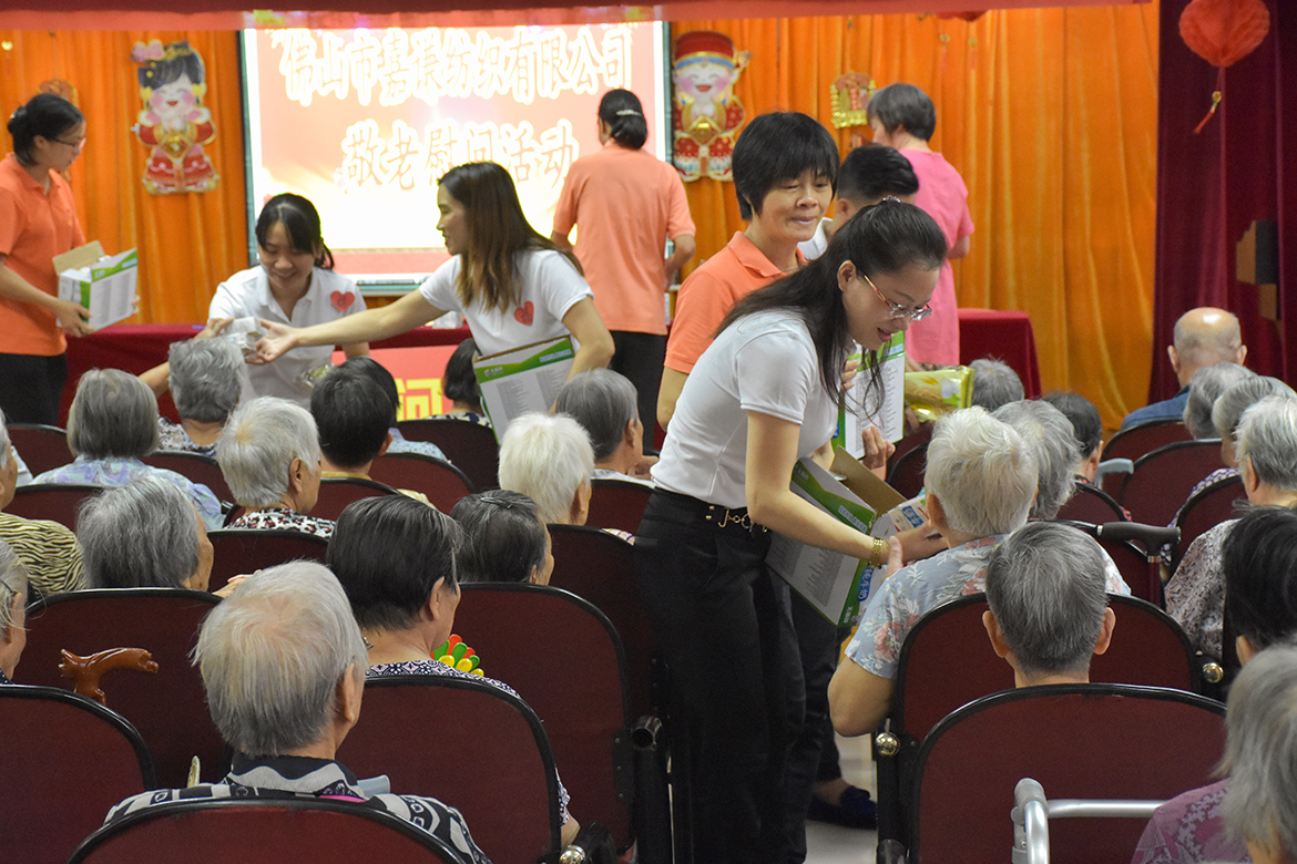 為大力弘揚中國的傳統(tǒng)美德尊老愛幼,進一步營造良好的企業(yè)文化氛圍,建設全民孝道文化,在中秋佳節(jié)來臨之際,佛山市嘉謙紡織有限公司工會主席黃小連、工會經審委主任崔曉燕及其他工會成員等一行人于8月27日組織開展了敬老慰問活動,走進張槎街道敬老院慰問老人,為258多名老人家送去了關懷和愛心物資。