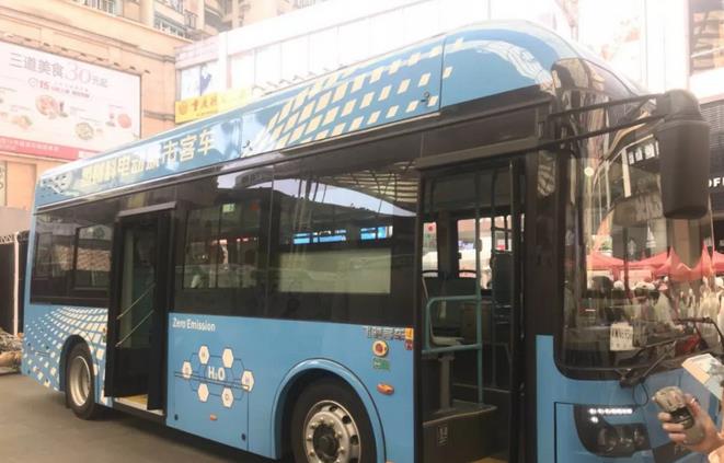 徒步的市民、企業(yè)員工在終點(diǎn)觀看氫燃料電池城市客車(chē)