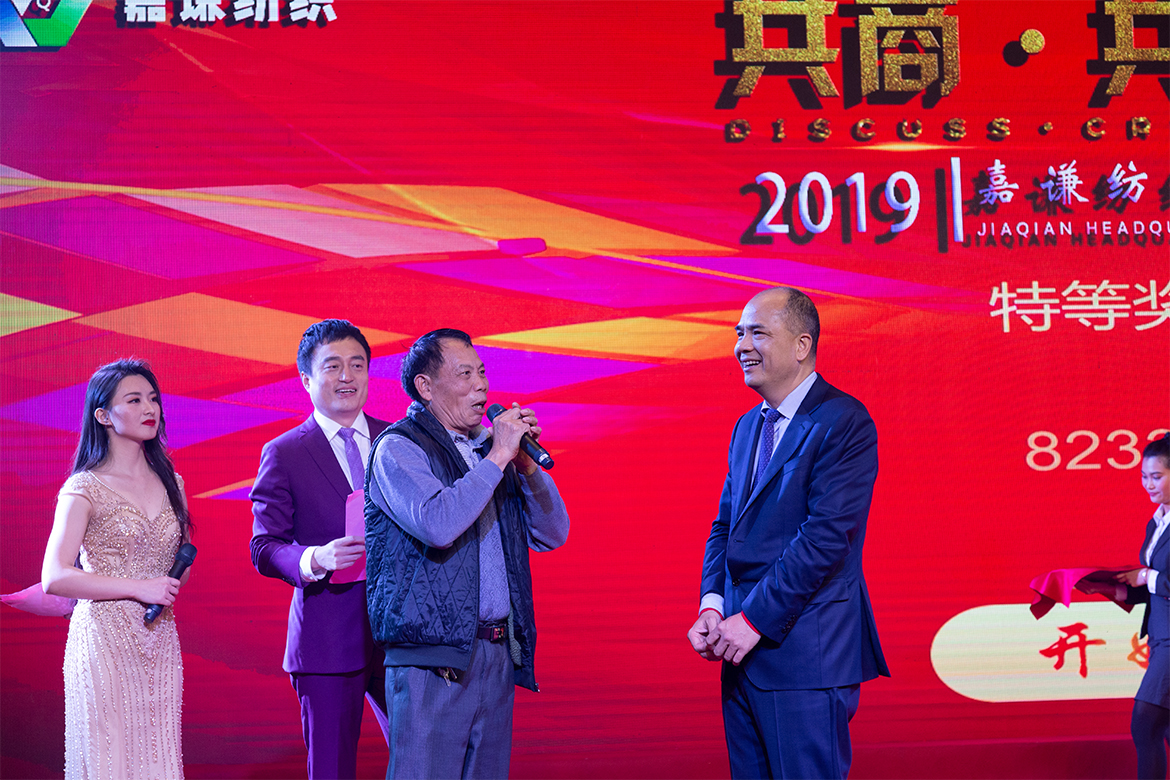 年會伊始,佛山市嘉謙紡織有限公司董事長蔡景輝先生對各位貴賓的到來表示誠摯的歡迎和衷心的感謝!感謝嘉謙家人們的努力與奮斗,感謝大家一直以來對嘉謙的支持與關(guān)懷。2018年我們秉承“嘉尚做人,謙實做事”的企業(yè)宗旨,取得了銷售穩(wěn)步增長,國家級高企穩(wěn)步推進。新的一年,翻開新的一頁,嘉謙在踐行“中國針織·嘉謙驕傲”的宏偉征途上永不停步。2019年,將以更加廣闊的視野和更加執(zhí)著的努力,向著更高更遠的目標健步邁進,再創(chuàng)嘉謙“百年紡企”征途上的新輝煌!